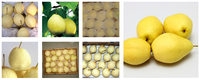 Pears come in many varieties. Years ago, before fresh fruit could always found in stores, and transportation was not so available, people stored fruits in cellars to last them over the winter. Apples and pears were good candidates. The pears for winter storage were selected for their keeping ability more than for their taste. The cultivating area of pear is similar to the apple. Northern part of China is the main producing area, like the provinces of Hebei, Shandong, Shanxi etc. Generally speaking, we collect Ya pear from Hebei and Shandong province, and Su pear from Shanxi province. Ya pear and crown pear are the main varieties, and the main producing areas are Jinzhou, Cangzhou and Botou area of Hebei Province , Yangxin area of Shandong province. We also have golden pear or the other variety of pear from Hebei and Shandong province. Chinese pears are famous for the features of crisp and more juice taste, sweet with a little acid flavor. It is very healthy fruit and is good for our body.